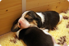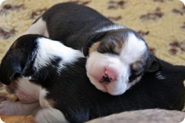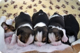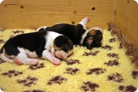 Die Welpen entwickeln sich prima in ihrer 2. Lebenswoche, haben alle ihr Geburtsgewicht verdoppelt und sind gerade dabei es zu verdreifachen.